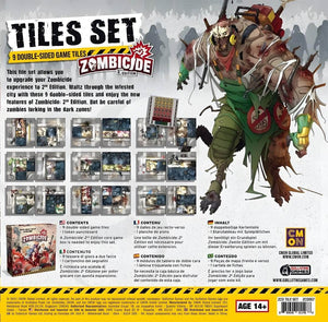 Content Notes: Kickstarter Edition of Zombicide: Second Edition Tile Set Board Game Accessory by CMON. Includes 9 double sided tiles and 1 punchboard.   Requires Zombicide core game to play (sold separately). Please note: unless otherwise stated paid add ons from the Kickstarter Campaign are not included.