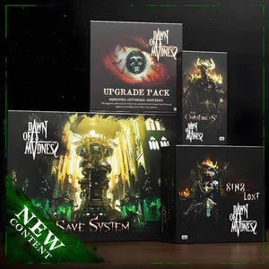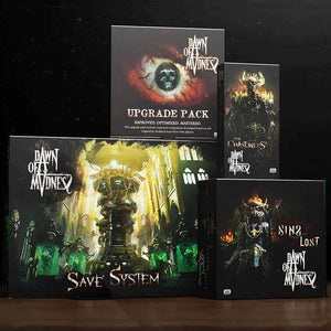 Tartalomjegyzetek: Kickstarter Exclusive Dawn of Madness: Új Essentials társasjáték -bővítőcsomag Diemension Games. Tartalmazza az elveszett (sin bővítés) bűneit, a chaheners (terrorbővítést), a mentési rendszert, a frissítési csomagot az első kiadású alapjátékokhoz és az összes alkalmazandó nyújtható célt. Nem teljes játék.  Szüksége van a Dawn of Madness Core Game játékra (külön -külön megvásárolva). Felhívjuk figyelmét, hogy ha a Kickstarter kampánytól nem szerepelnek másként, a Kickstarter kampányból származó fizetett kiegészítők nem szerepelnek.