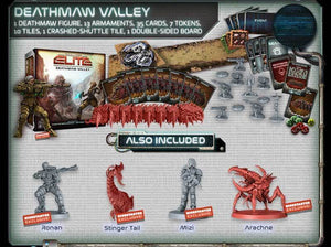 Notas de conteúdo:Kickstarter Deathmaw Valley Expansion for Project Elite. Inclui expansão do Vale do Deathmaw, Figuras exclusivas do Kickstarter Ronan, Stinger Tail, Mizi e Arachne. Requer o jogo Core do Project Elite para jogar (vendido separadamente). Observação: a menos que os complementos pagos de contrário da campanha do Kickstarter não estejam incluídos.
