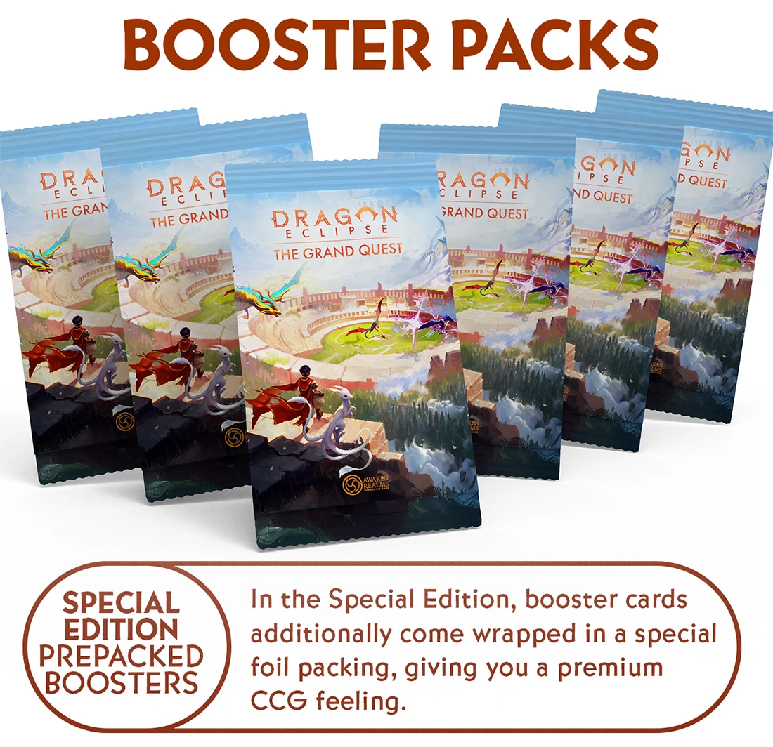 內容註釋: Kickstarter 獨家 Dragon Eclipse: The Grand Quest 特別版核心承諾棋盤遊戲擴展 Awaken Realms. 包括特別版核心遊戲,以及所有解鎖的延伸目標(特別版)。請注意:除非另有說明,否則不包括 Kickstarter 活動的付費附加內容。